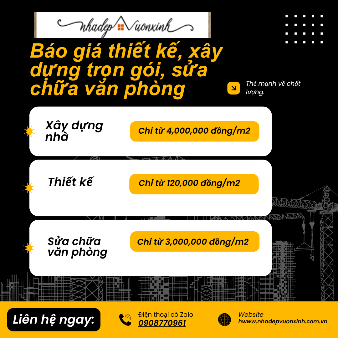 Báo giá thiết kế nhà đẹp, xây dựng trọn gói, sửa chữa văn phòng phường Phú Thuận